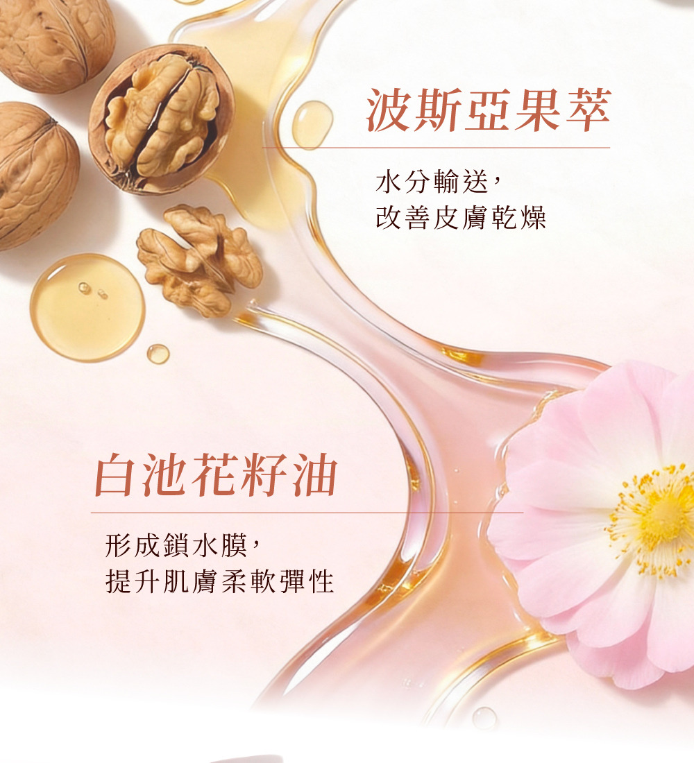 細緻呵護每一吋肌膚,帶來豐潤舒適的保養感受。