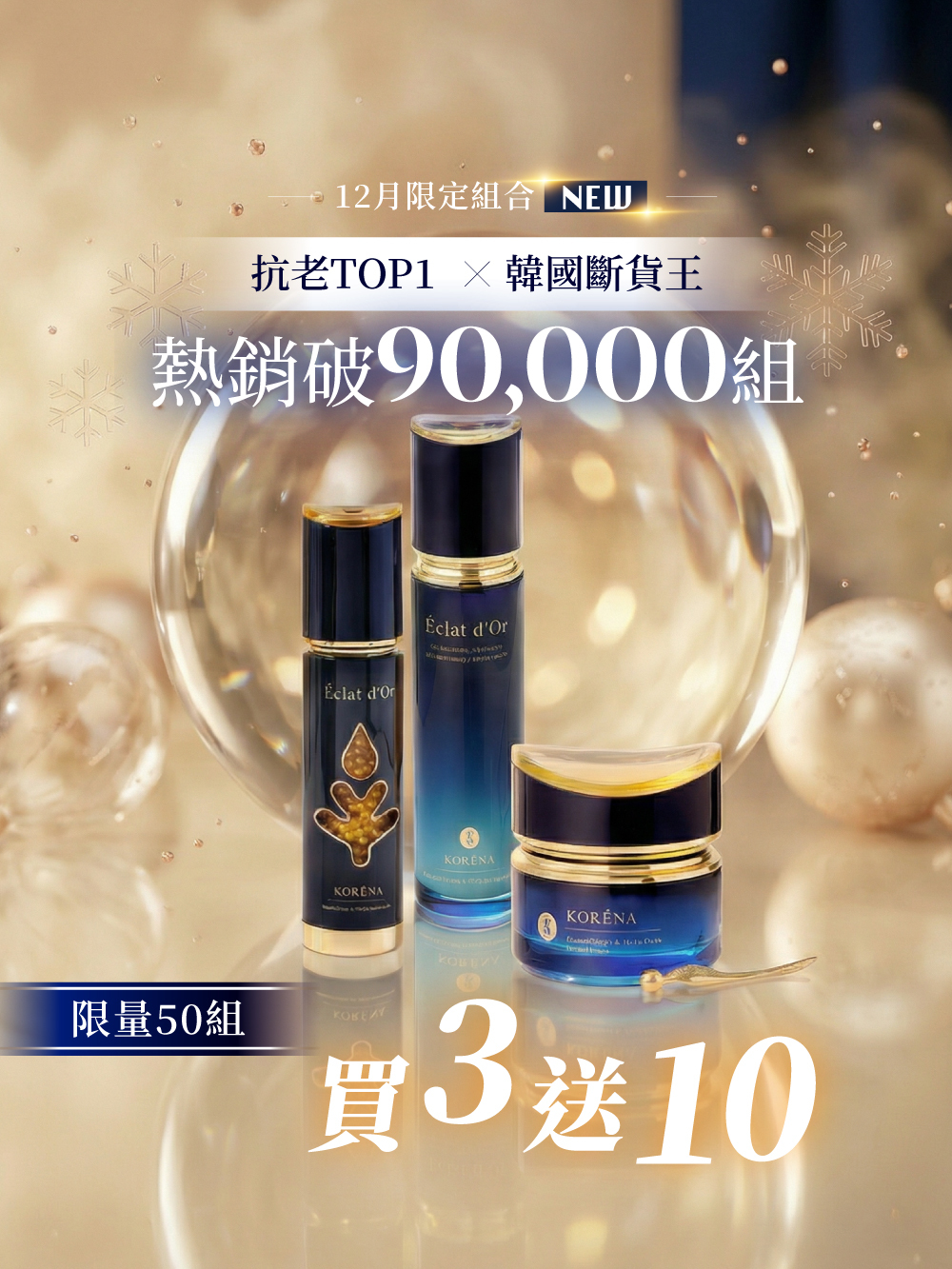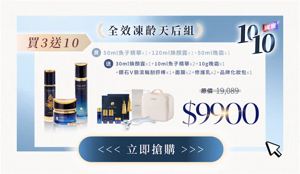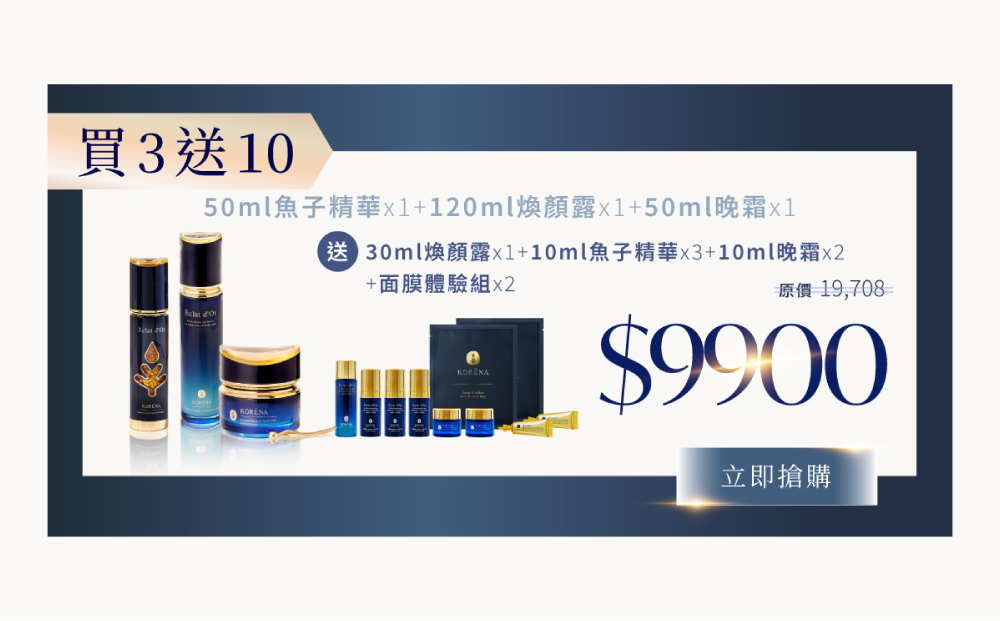 【組合內容】50ml魚子精華*1+50ml小藍鑽晚霜*1+120ml煥顏露*1
