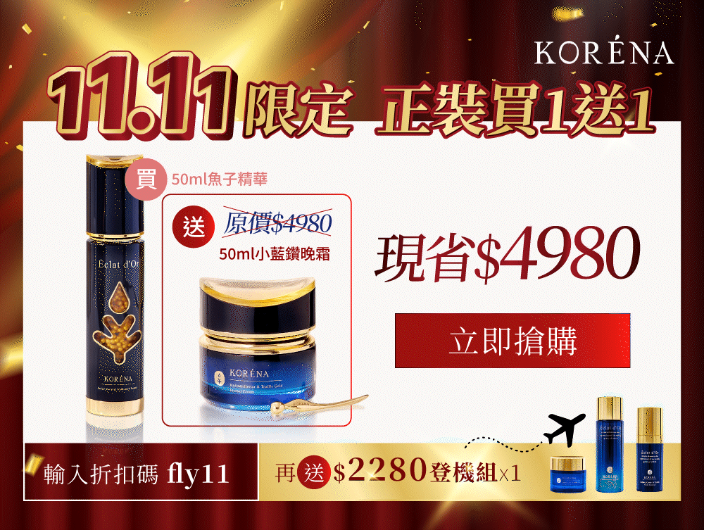 🎁輸入折扣碼『fly11』 再送 $2280 逆齡魚子登機組*1