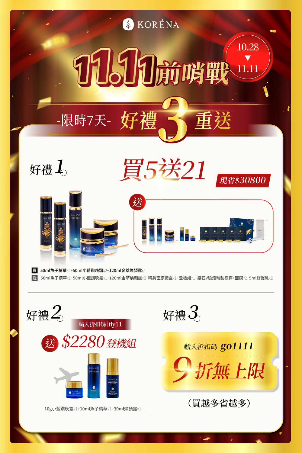 🎁輸入折扣碼『fly11』 再送 $2280 逆齡魚子登機組*1